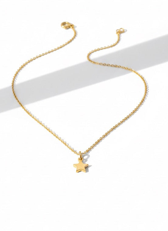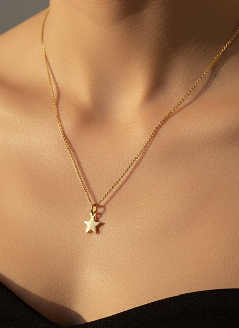 A delicate star-shaped pendant in polished gold, designed for understated elegance. Its subtle sparkle makes it perfect for layering or wearing solo every day.